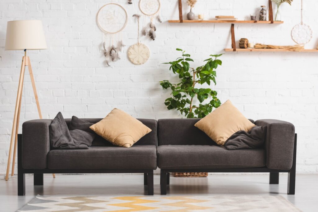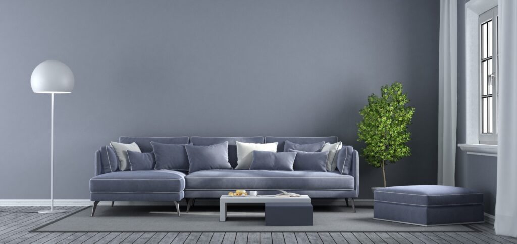 Nagyon szép és elegáns, ha a kanapéval megegyező szürkét választunk, viszont talán itt a legfontosabb a megfelelő kiegészítők kiválasztása, hogy ne váljon nyomasztóvá.
